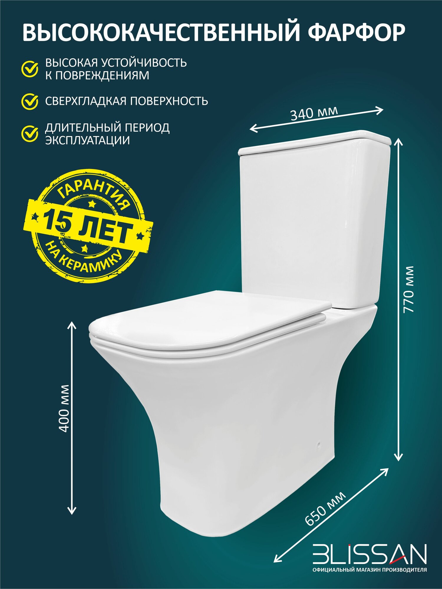- Современный дизайн: унитаз напольный компакт BLISSAN Prestige Rimless станет стильным акцентом в интерьере вашей ванной комнаты.