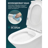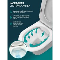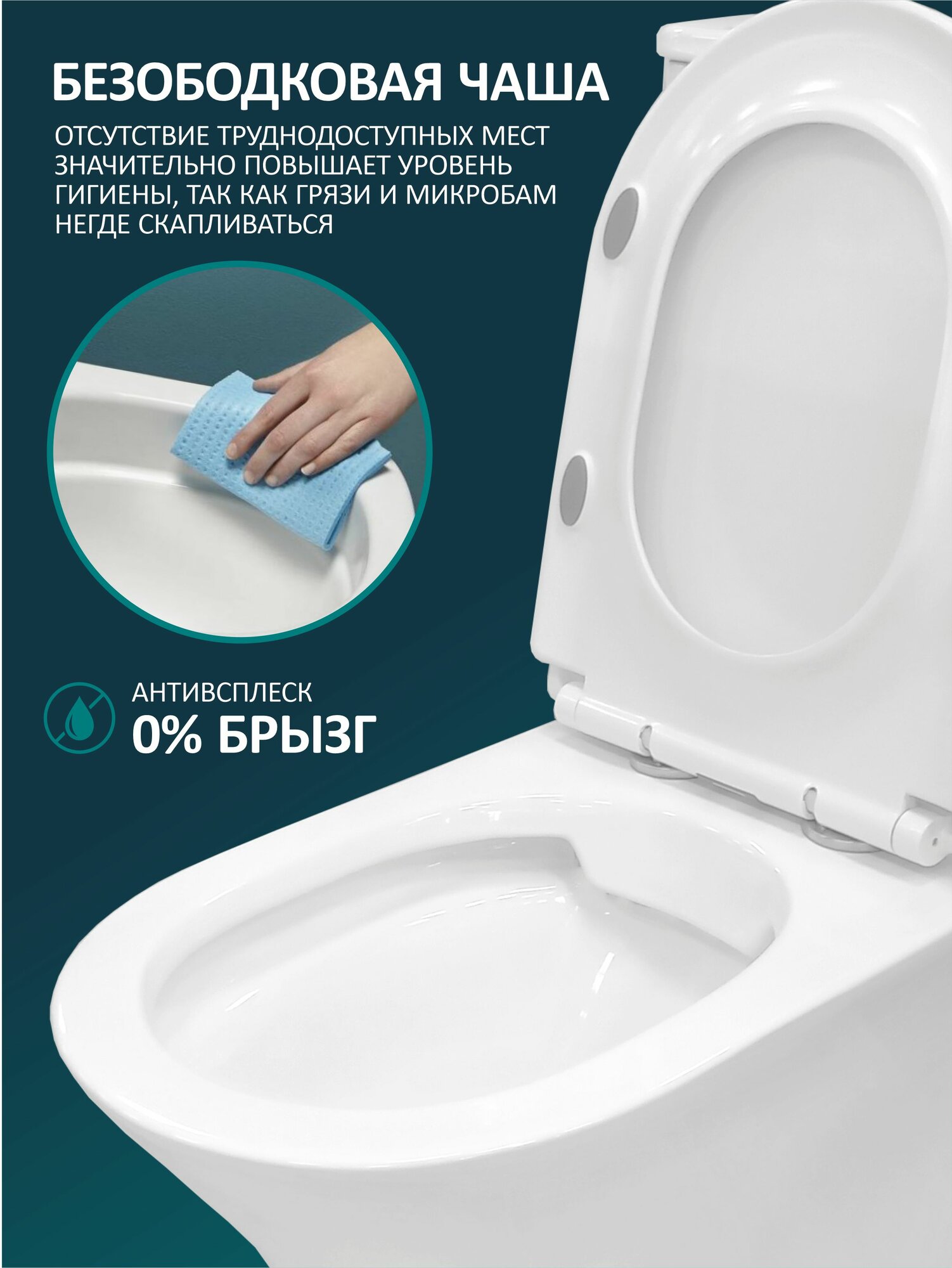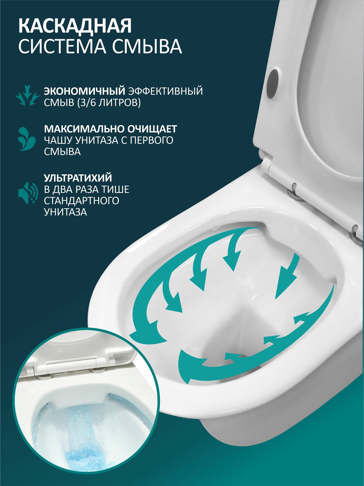- Сиденье с микролифтом: плавное и бесшумное закрывание, исключающее удары и повреждения.