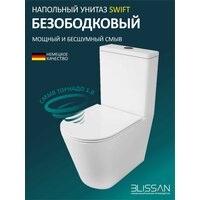 Унитаз напольный безободковый BLISSAN Swift с системой смыва Торнадо 3.0 и сиденьем микролифт быстросъемное