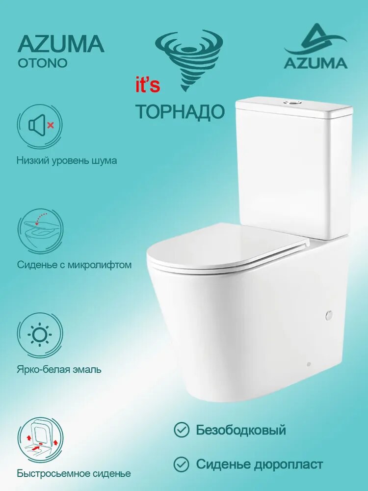 Унитаз напольный компакт безободковый с бачком Azuma Otono Tornado, с быстросъемным сиденьем микролифт, смв Торнадо: сравнение цен, характеристики, фото, актуальное наличие и цены.