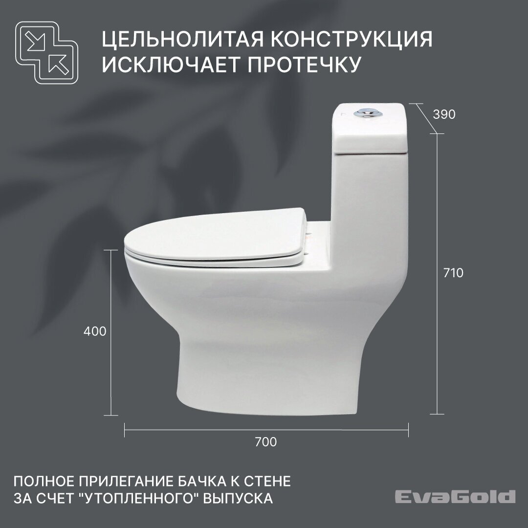 Подходит Арматура двухуровневая для унитаза EvaGold SM9601 2 кнопки, нижний подвод воды (подходит для SM9006) и Сиденье с доводчиком для унитаза SM9601 ПП тонкое, Сиденье для унитаза EvaGold Т1017 с доводчиком, Сиденье для унитаза EvaGold SM9601 с доводчиком