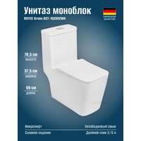 Унитаз напольный моноблок ROYCE Bronx RCT-152002WH, безободковый, сиденье дюропласт, микролифт