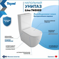 Унитаз напольный безободковый с быстросъемным сиденьем микролифт Teymi Lina T40103: сравнение цен, характеристики, фото, актуальное наличие и цены.