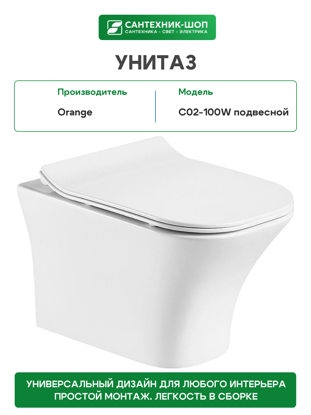 Купить Унитаз Orange C02-100W подвесной с сиденьем Микролифт фарфор подвесной с доставкой по всей России.