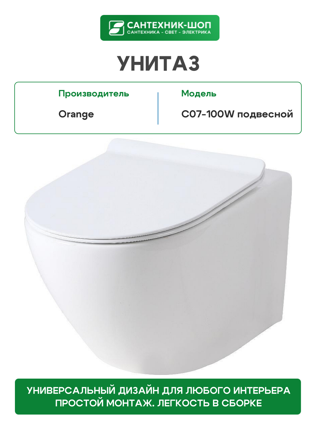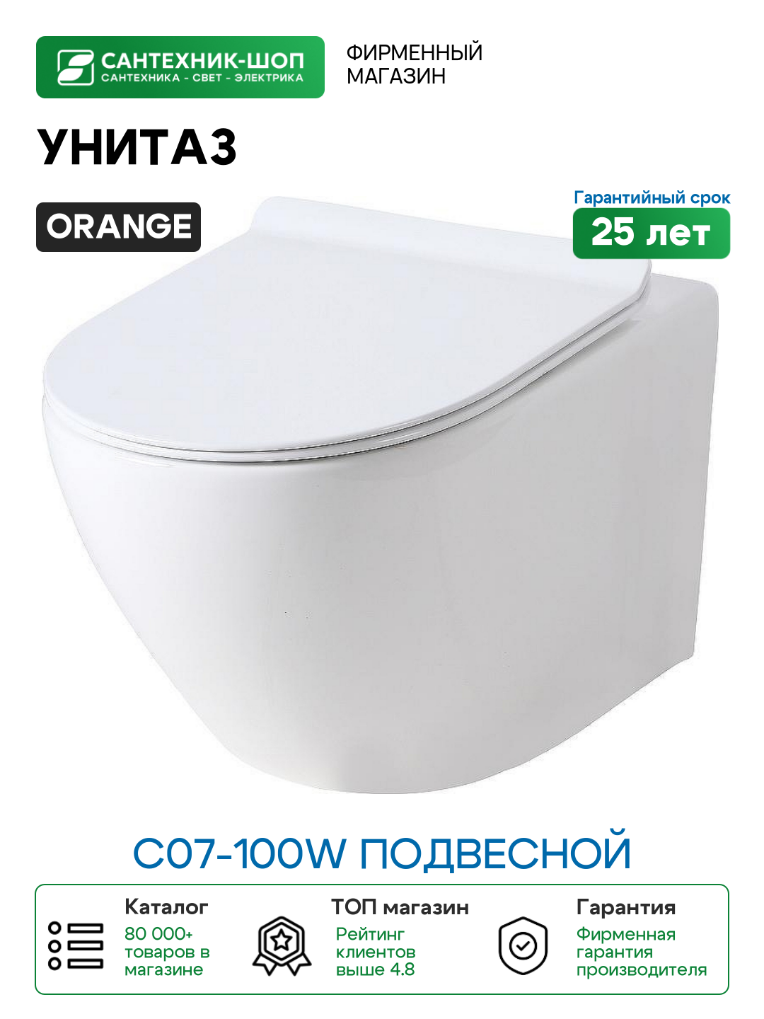 Купить Унитаз Orange C07-100W подвесной с сиденьем Микролифт фарфор подвесной с доставкой по всей России.