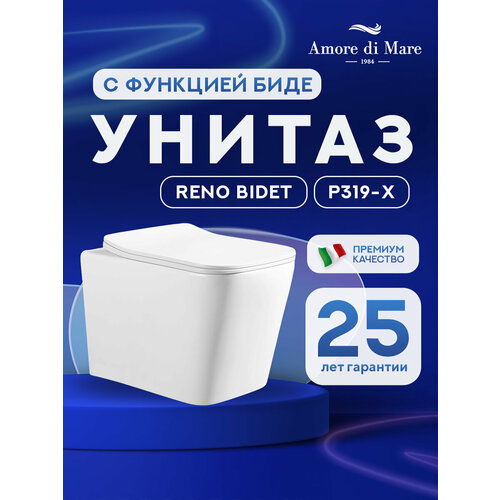 Купить Унитаз подвесной Amore di Mare Reno Bidet P319-X с функцией биде, фарфор, быстросъемное сиденье с микролифт с доставкой по всей России.
