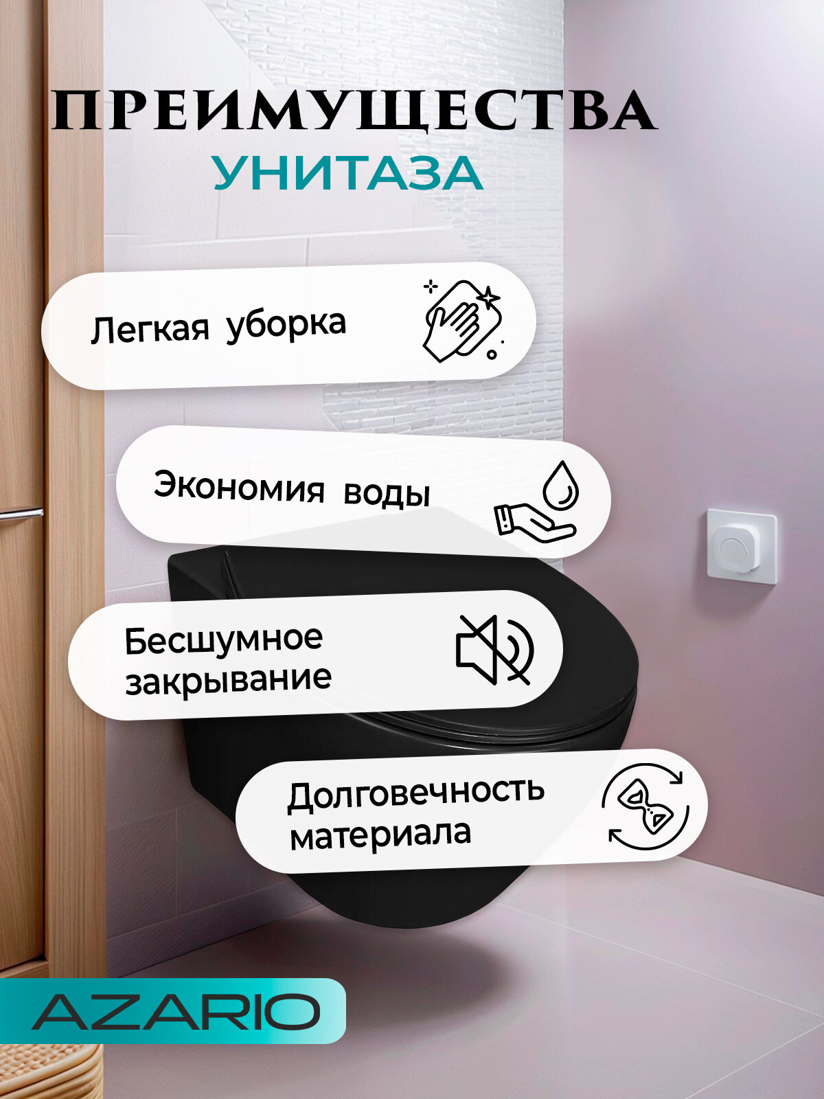 Выбирая унитаз подвесной Azario Keras, вы получаете стильный, функциональный и гигиеничный продукт, который станет украшением вашей ванной комнаты и обеспечит комфорт и удобство использования.