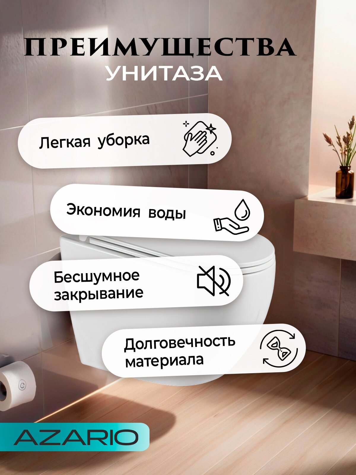 Купить Унитаз подвесной Azario Navio 540x365x425 безободковый в комплекте с сиденьем микролифт, AZ-0074 с доставкой по всей России. Унитаз подвесной Azario Navio 540x365x425 безободковый в комплекте с сиденьем микролифт, AZ-0074: сравнение цен, характеристики, фото, актуальное наличие и цены.