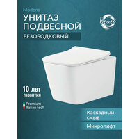 Купить Унитаз подвесной Benneri Modena с микролифтом, безободковый, белый с доставкой по всей России.
