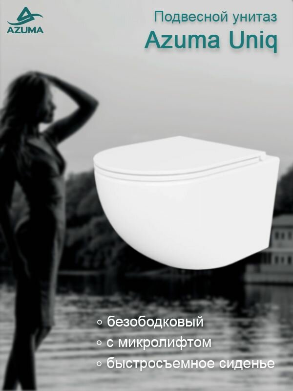 Унитаз подвесной безободковый Azuma Unig, фарфор, безободковый, быстросъемное сиденье с микролифтом: сравнение цен, характеристики, фото, актуальное наличие и цены.