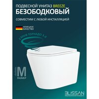 Унитаз подвесной безободковый BLISSAN Breeze с системой смыва Торнадо 3.0 и сиденьем микролифт быстросъемное