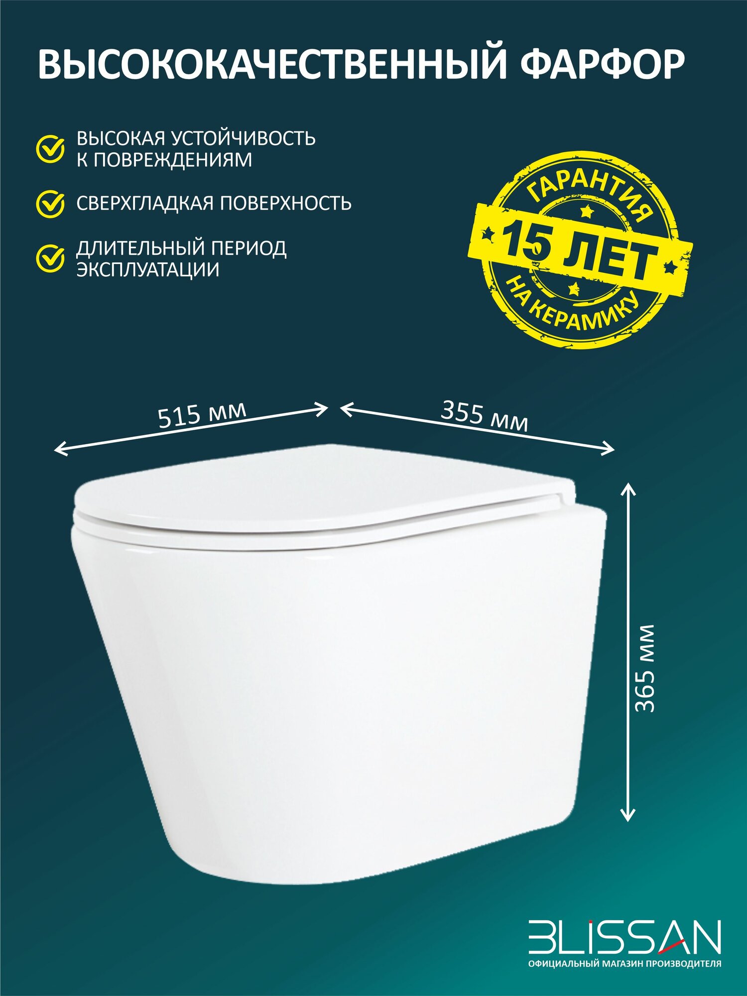 Унитаз подвесной для инсталляции BLISSAN Breeze – это идеальное решение для тех, кто ценит качество и комфорт. Закажите подвесной унитаз безободковый торнадо прямо сейчас и оцените преимущества модели с сиденьем микролифт.
