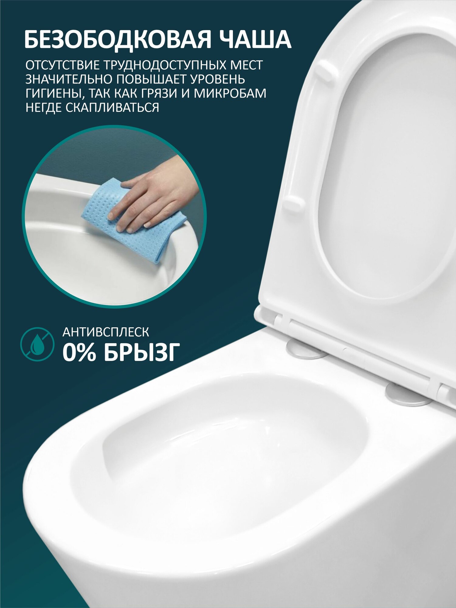 - Сиденье с микролифтом: плавное и бесшумное закрывание, исключающее удары и повреждения.