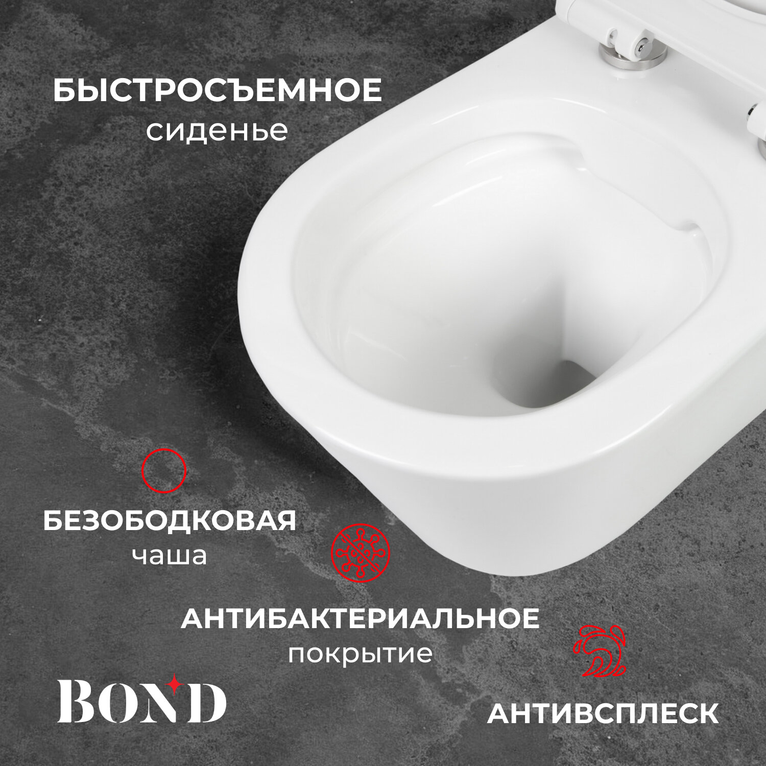 Купить Унитаз подвесной безободковый BOND F03-10 с сиденьем с микролифтом с доставкой по всей России. Унитаз подвесной безободковый BOND F03-10 с сиденьем с микролифтом: сравнение цен, характеристики, фото, актуальное наличие и цены.