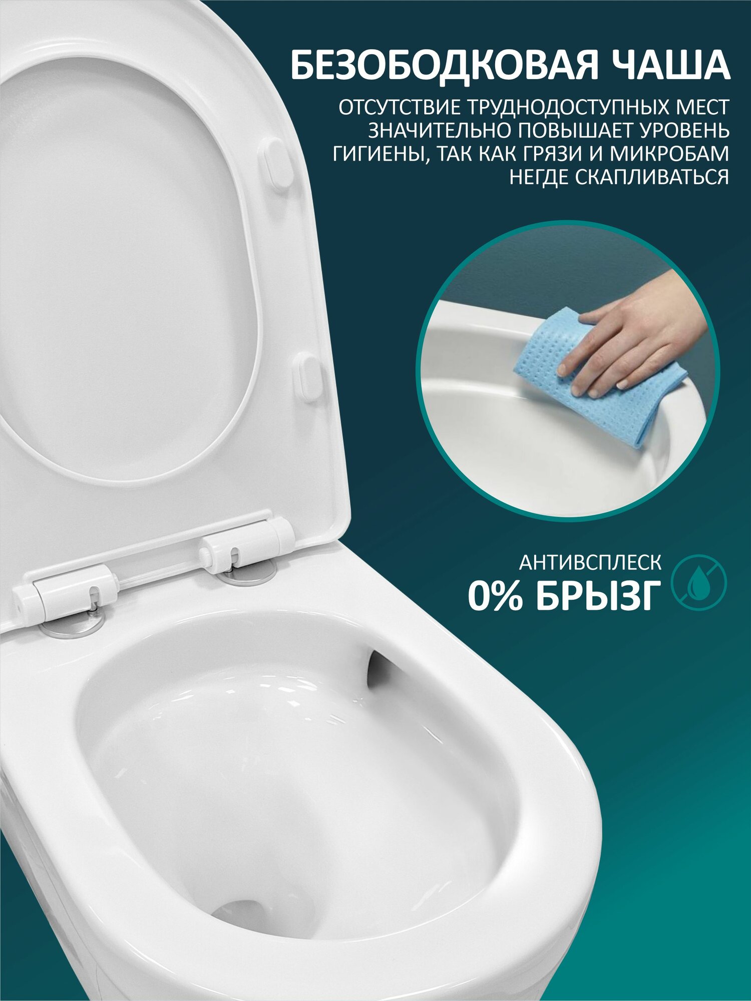 - Сиденье с микролифтом: плавное и бесшумное закрывание, исключающее удары и повреждения.
