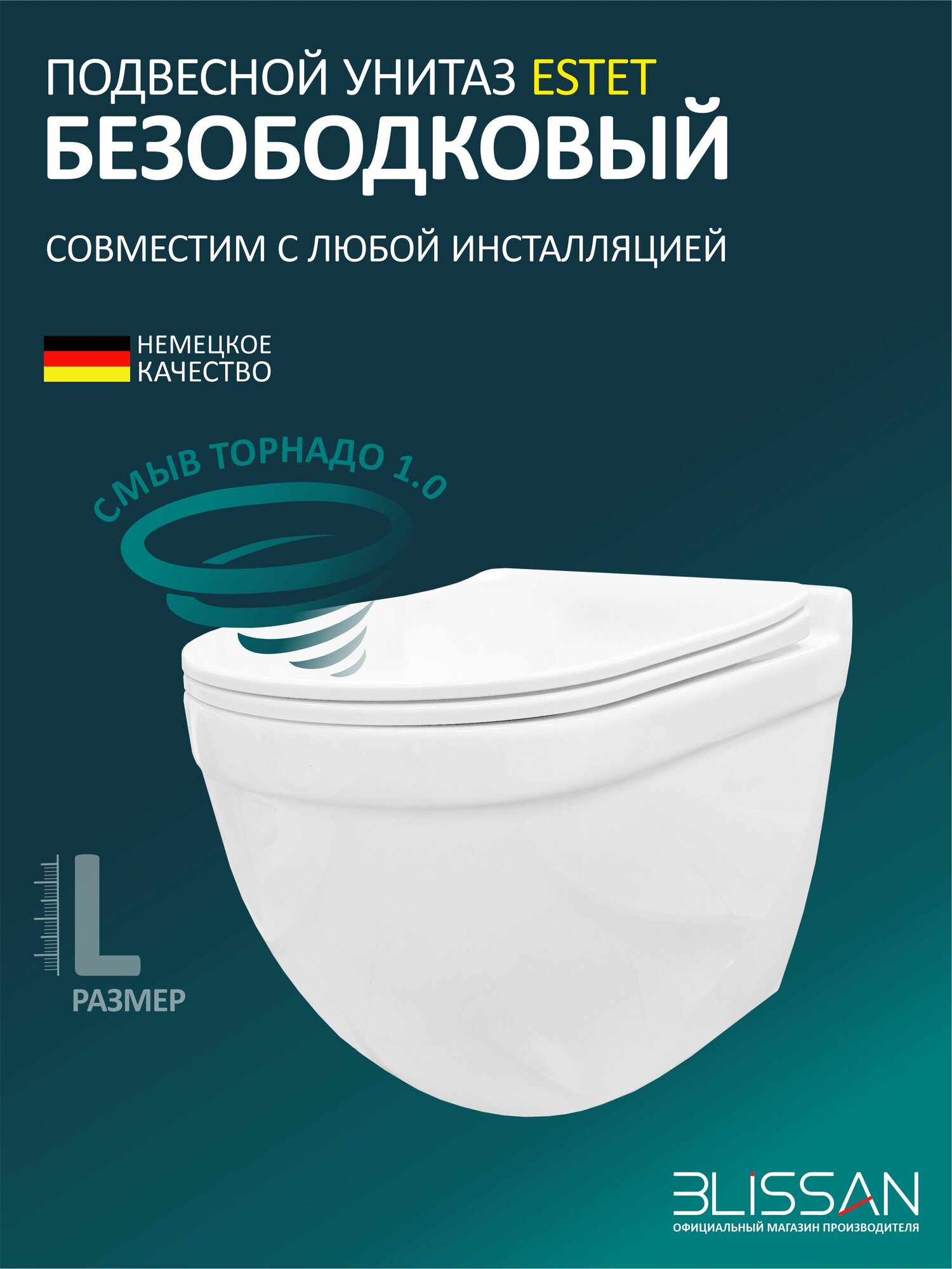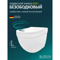 Унитаз подвесной безободковый Estet BLISSAN с системой смыва Торнадо 1.0 и сиденьем микролифт быстросъемное