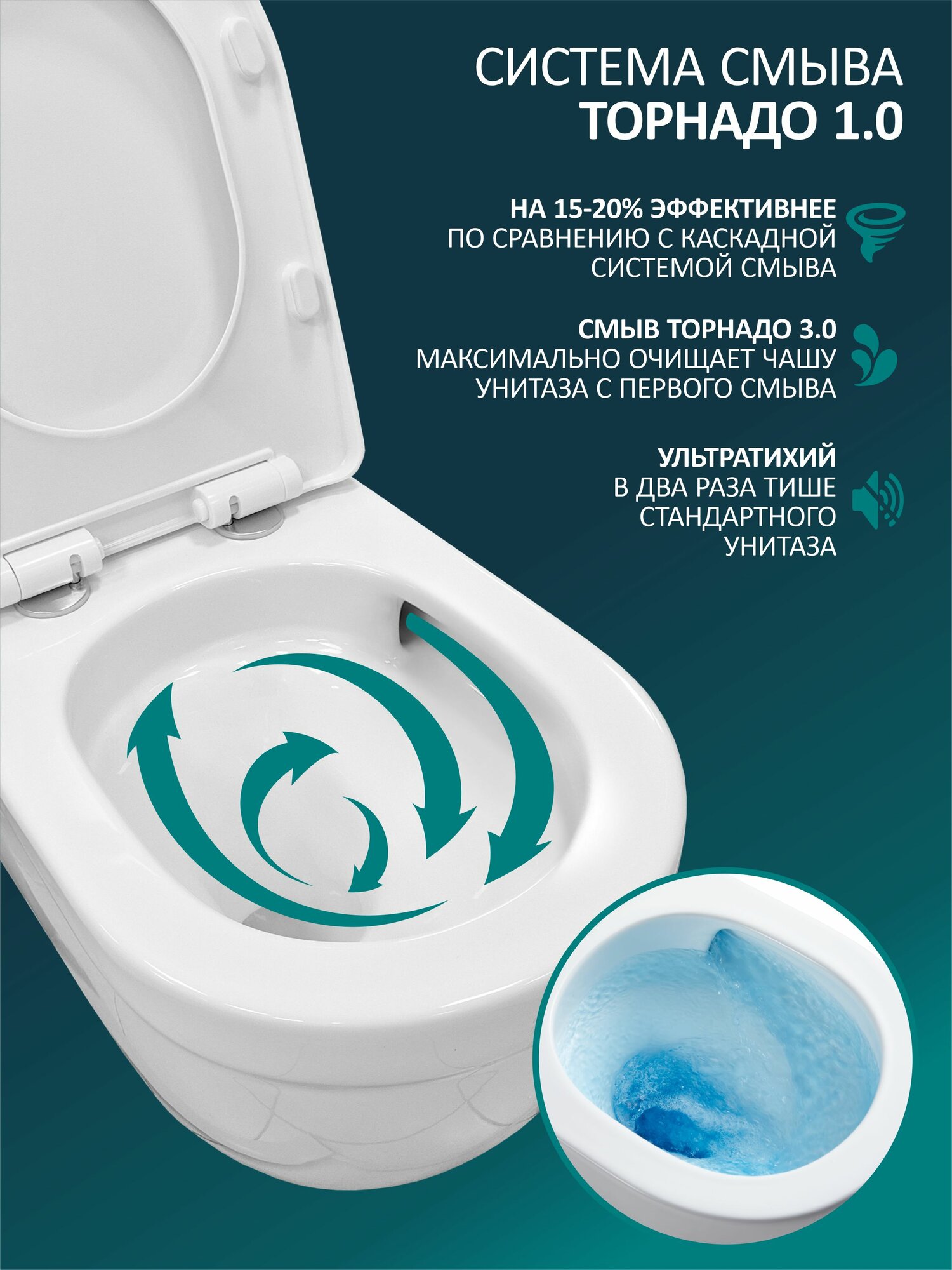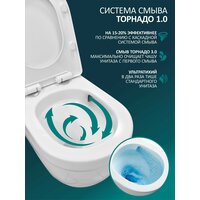 - Смыв Торнадо 1.0: технология, создающая мощный водоворот для идеальной чистоты чаши.