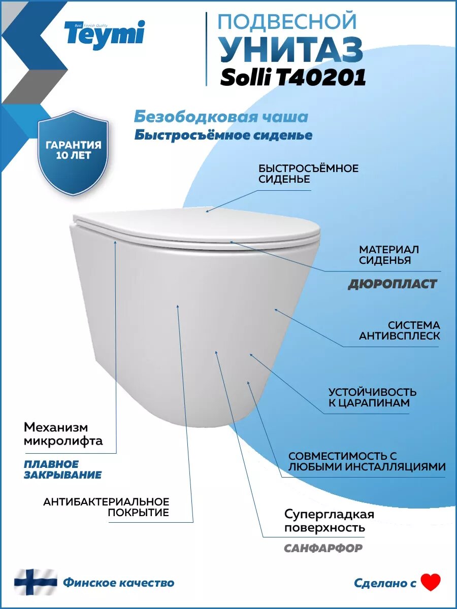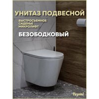 Унитаз подвесной безободковый с быстросъемным сиденьем микролифт Teymi Solli T40201: сравнение цен, характеристики, фото, актуальное наличие и цены.