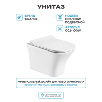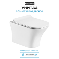 Унитаз-моноблок Orange C02-100W, подвесной, безободковый, белый, с сиденьем микролифт
