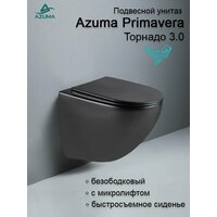 Унитаз подвесной черный Azuma Primavera Торнадо 3.0, фарфор, быстросъемное сиденье с микролифтом: сравнение цен, характеристики, фото, актуальное наличие и цены.