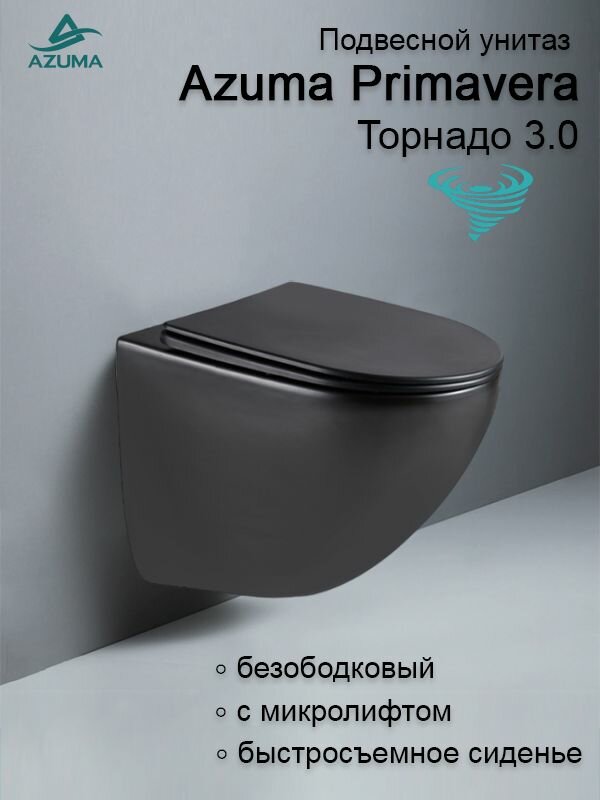 Купить Унитаз подвесной черный Azuma Primavera Торнадо 3.0, фарфор, быстросъемное сиденье с микролифтом с доставкой по всей России.