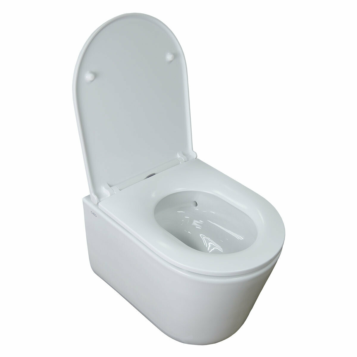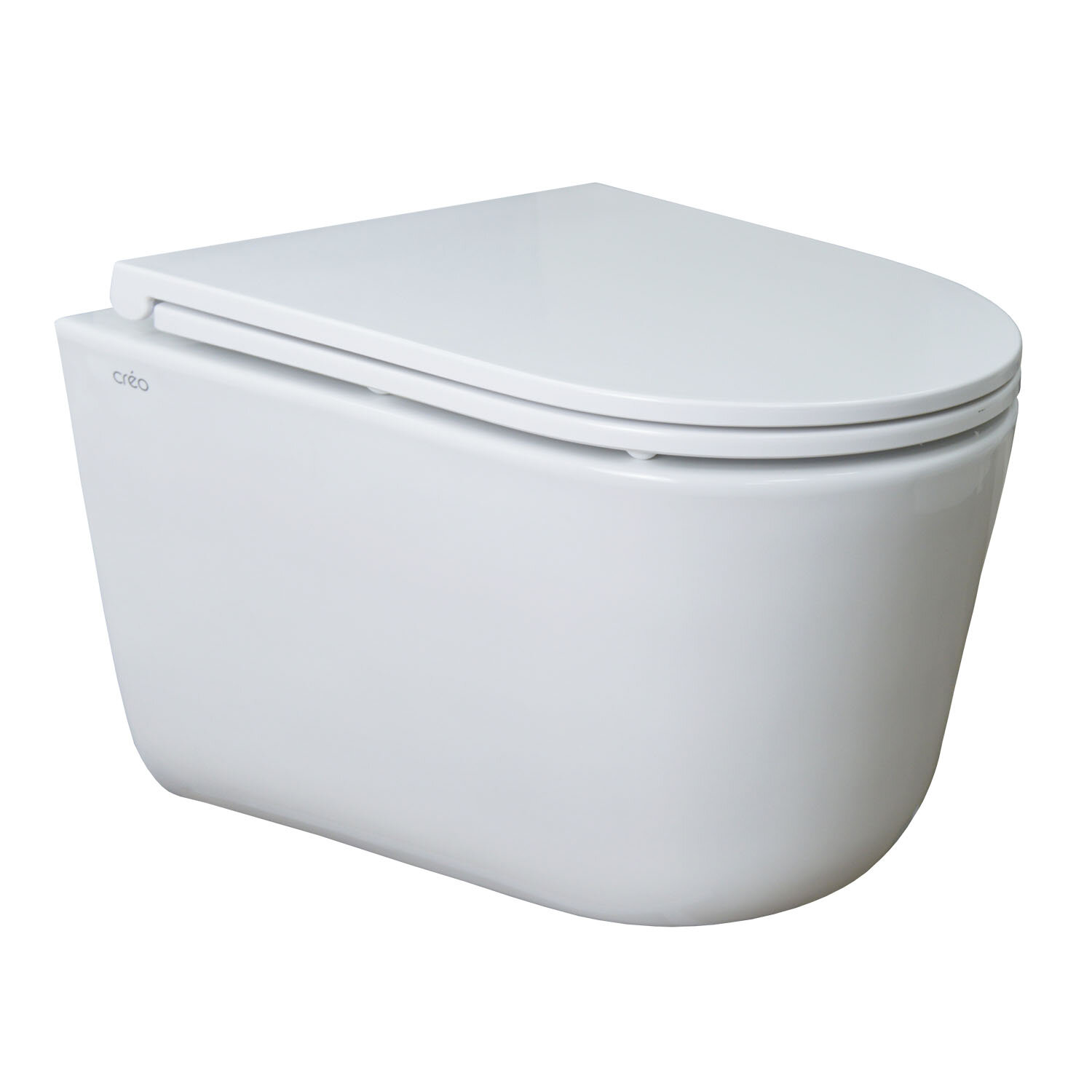 Унитаз подвесной Creo Ceramique LYon 2.0 490х360х350 безободковый, с системой смыва Tornado в комплекте с быстросъемным сиденьем микролифт (LY1100R): сравнение цен, характеристики, фото, актуальное наличие и цены.