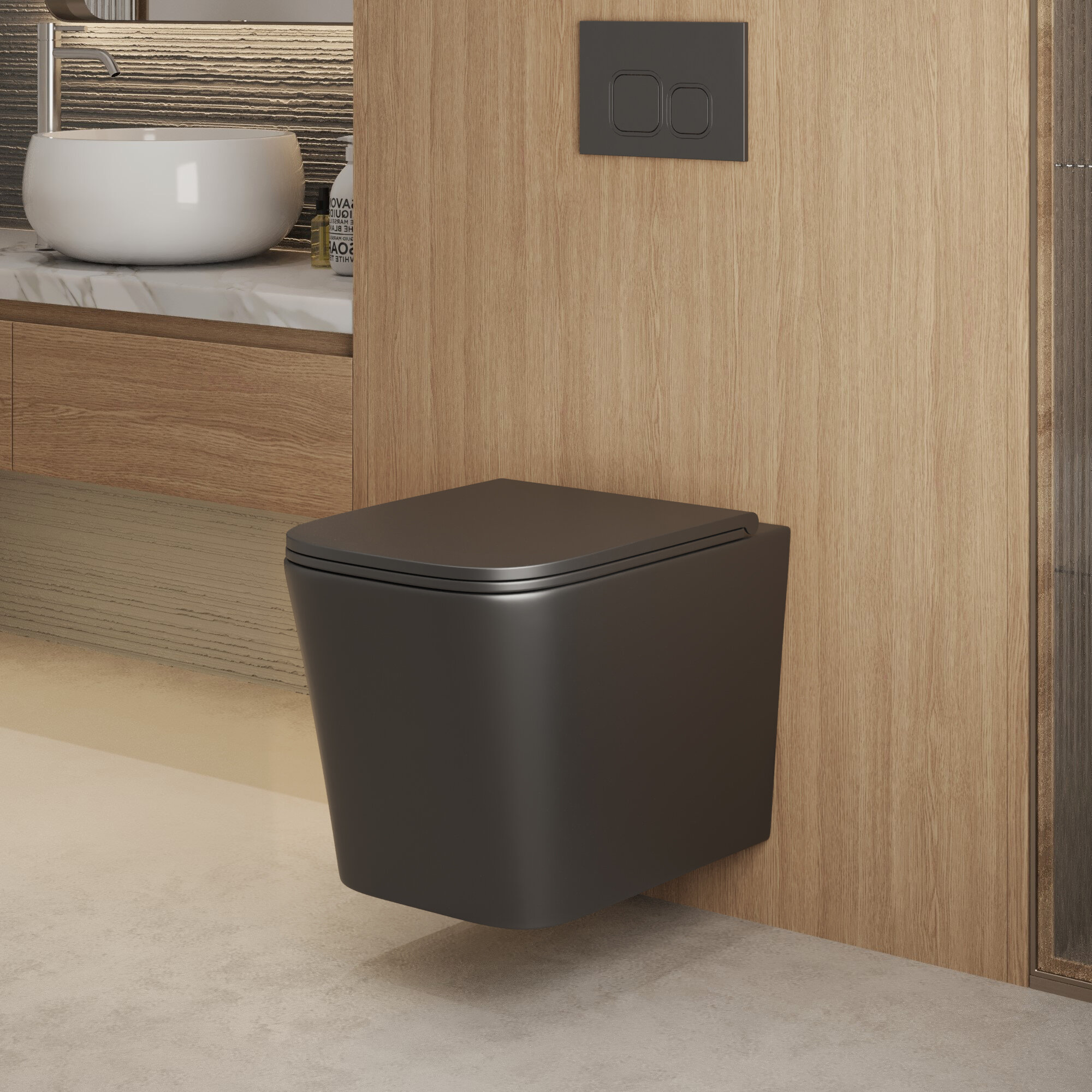 Унитаз подвесной Grossman GR-4441BMSQ (530х360х365) безободковый, черный матовый с тонкой крышкой, микролифт, смыв торнадо,1 место: сравнение цен, характеристики, фото, актуальное наличие и цены.