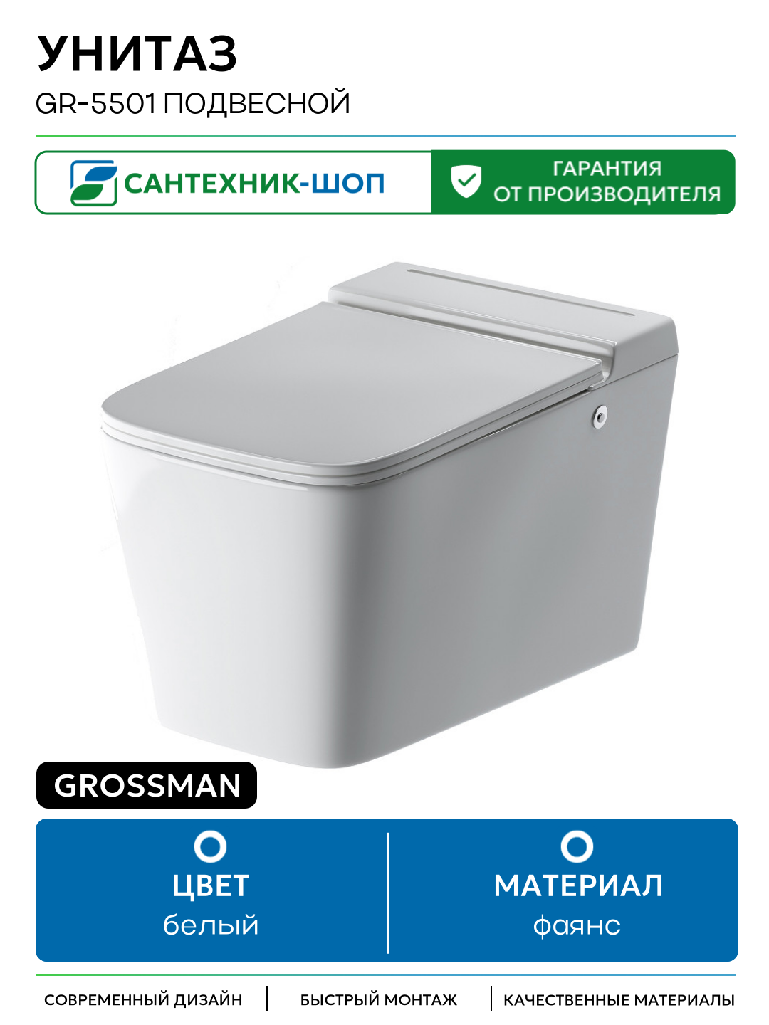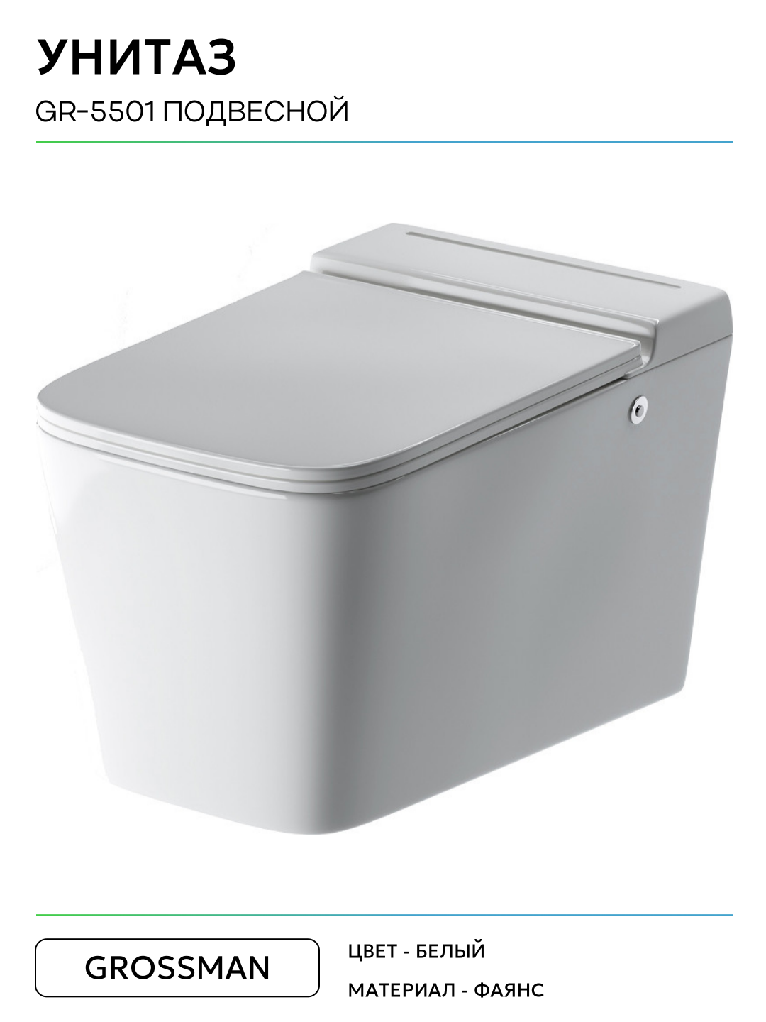 Купить Унитаз Grossman GR-5501 подвесной белый фаянс подвесной с доставкой по всей России. Унитаз Grossman GR-5501 подвесной белый фаянс подвесной: сравнение цен, характеристики, фото, актуальное наличие и цены.