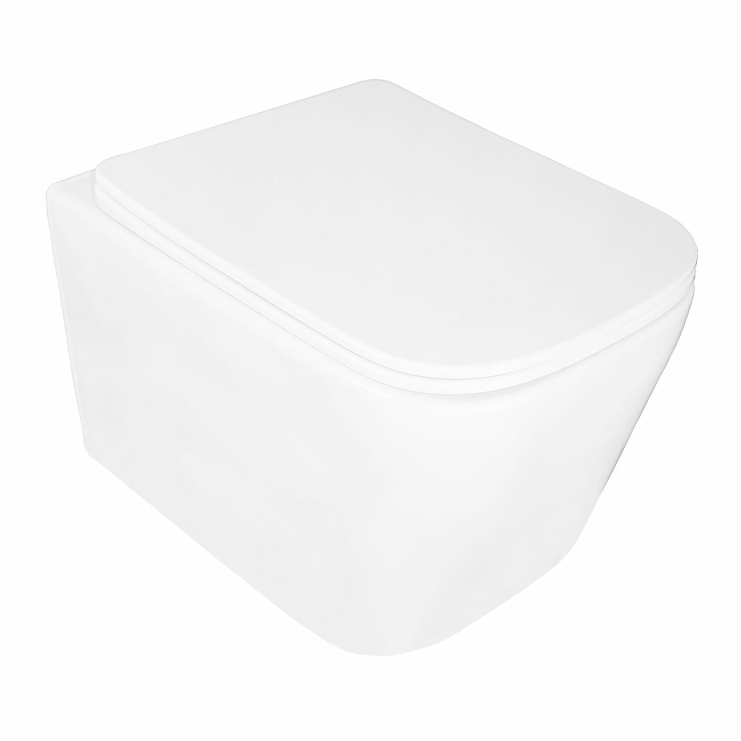 Купить Унитаз подвесной Loranto Delphi 340х485х290 безободковый с системой смыва Tornado в комплекте с быстросъемным сиденьем микролифт (91343) с доставкой по всей России.
