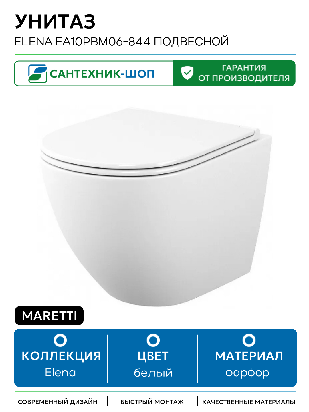 Унитаз Maretti Elena EA10PBM06-844 подвесной с сиденьем Микролифт белый фарфор подвесной: сравнение цен, характеристики, фото, актуальное наличие и цены.