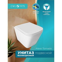Купить Унитаз подвесной OWL 1975 Alexo Tornado 490х340х350 безободковый с сидением микролифт, скрытое торнадо с доставкой по всей России.