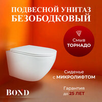 Унитаз подвесной со смывом торнадо безободковый белый с сиденьем микролифт BOND Oval F12-10: сравнение цен, характеристики, фото, актуальное наличие и цены.