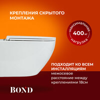 Купить Унитаз подвесной со смывом торнадо безободковый белый с сиденьем микролифт BOND Oval F12-10 с доставкой по всей России.