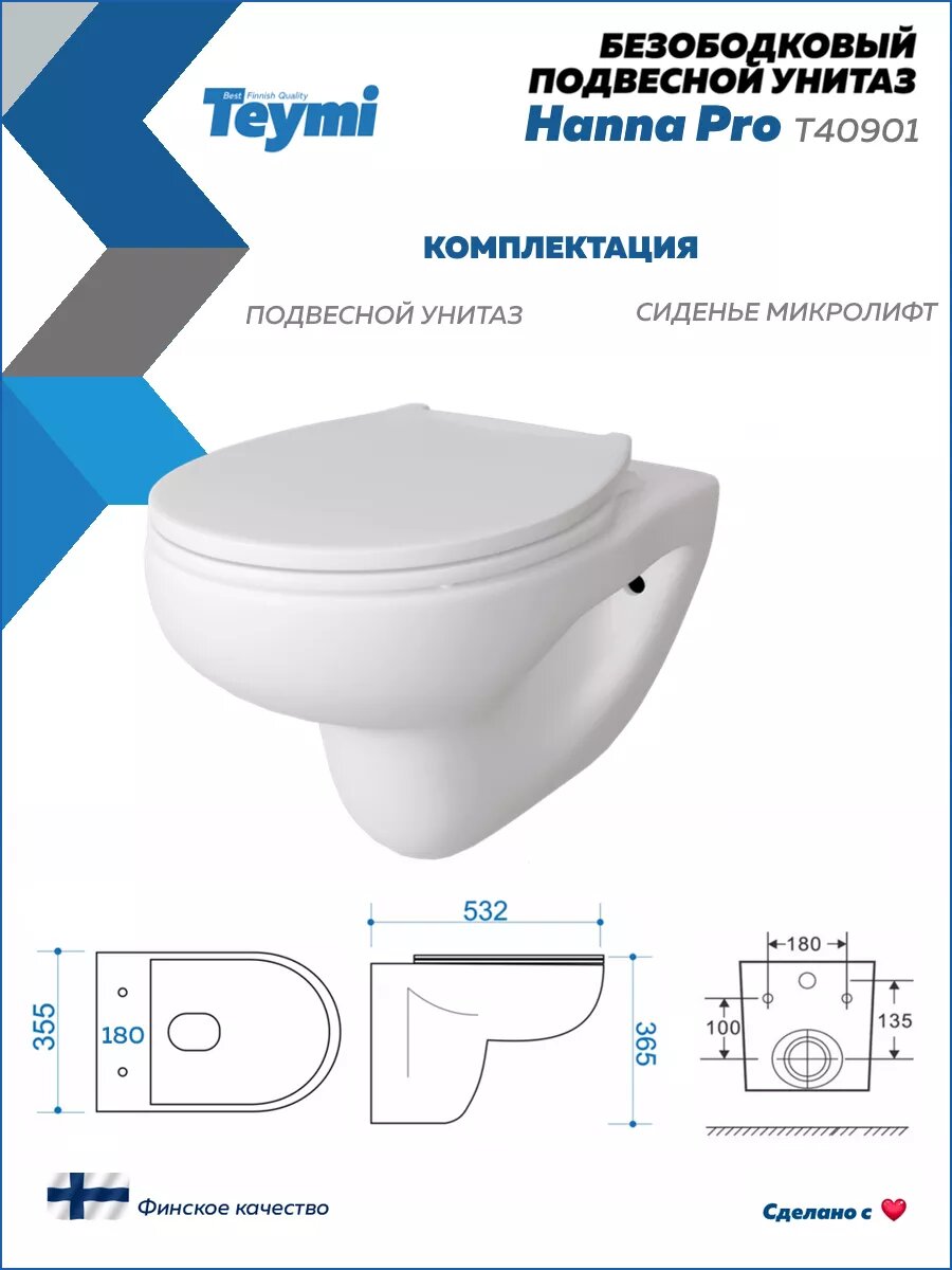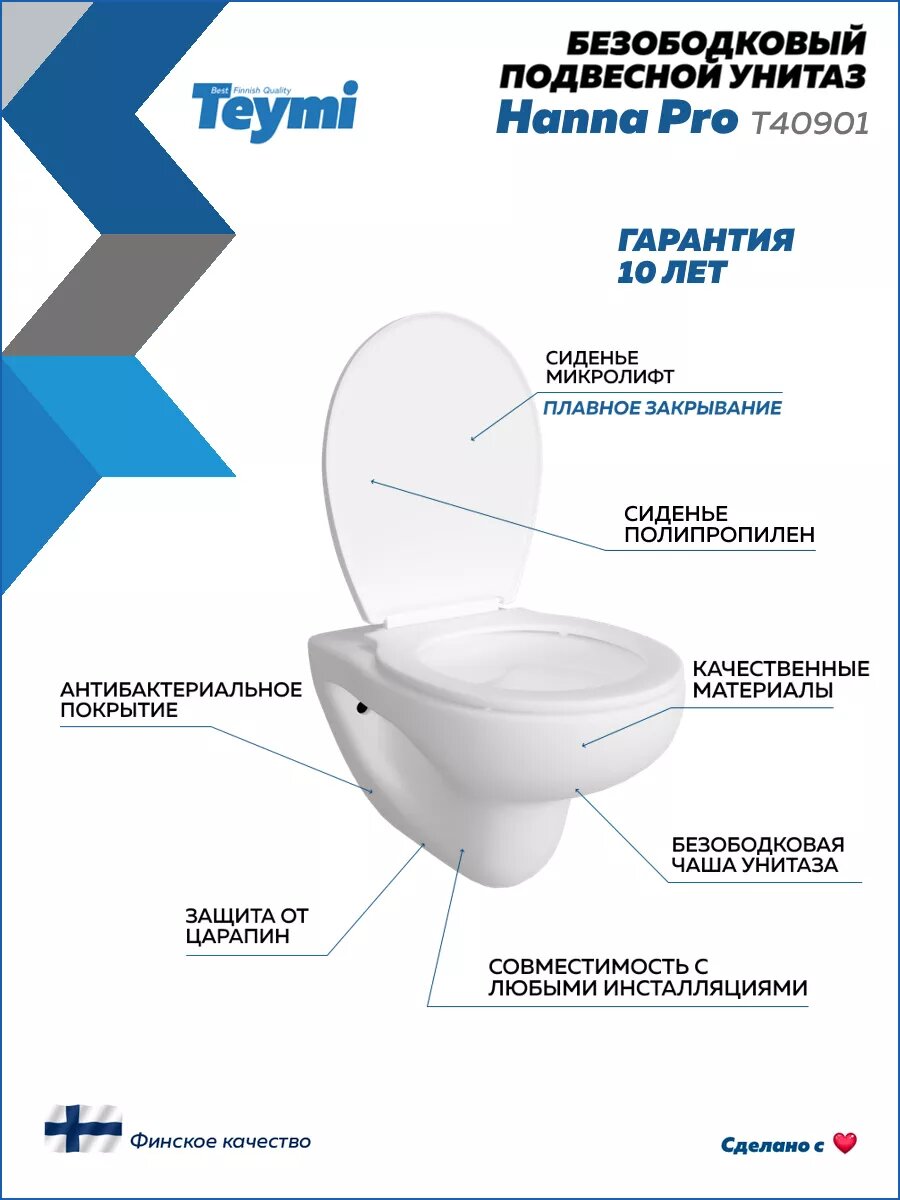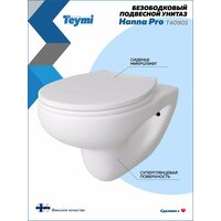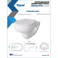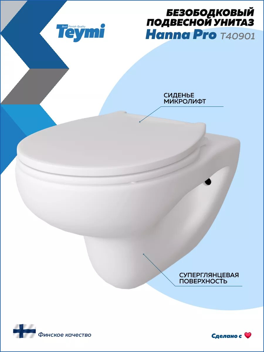 Унитаз подвесной безободковый с сиденьем микролифт Teymi Hanna Pro T40901: сравнение цен, характеристики, фото, актуальное наличие и цены.