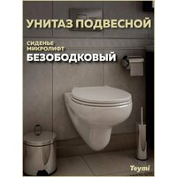 Купить Унитаз подвесной безободковый с сиденьем микролифт Teymi Hanna Pro T40901 с доставкой по всей России.