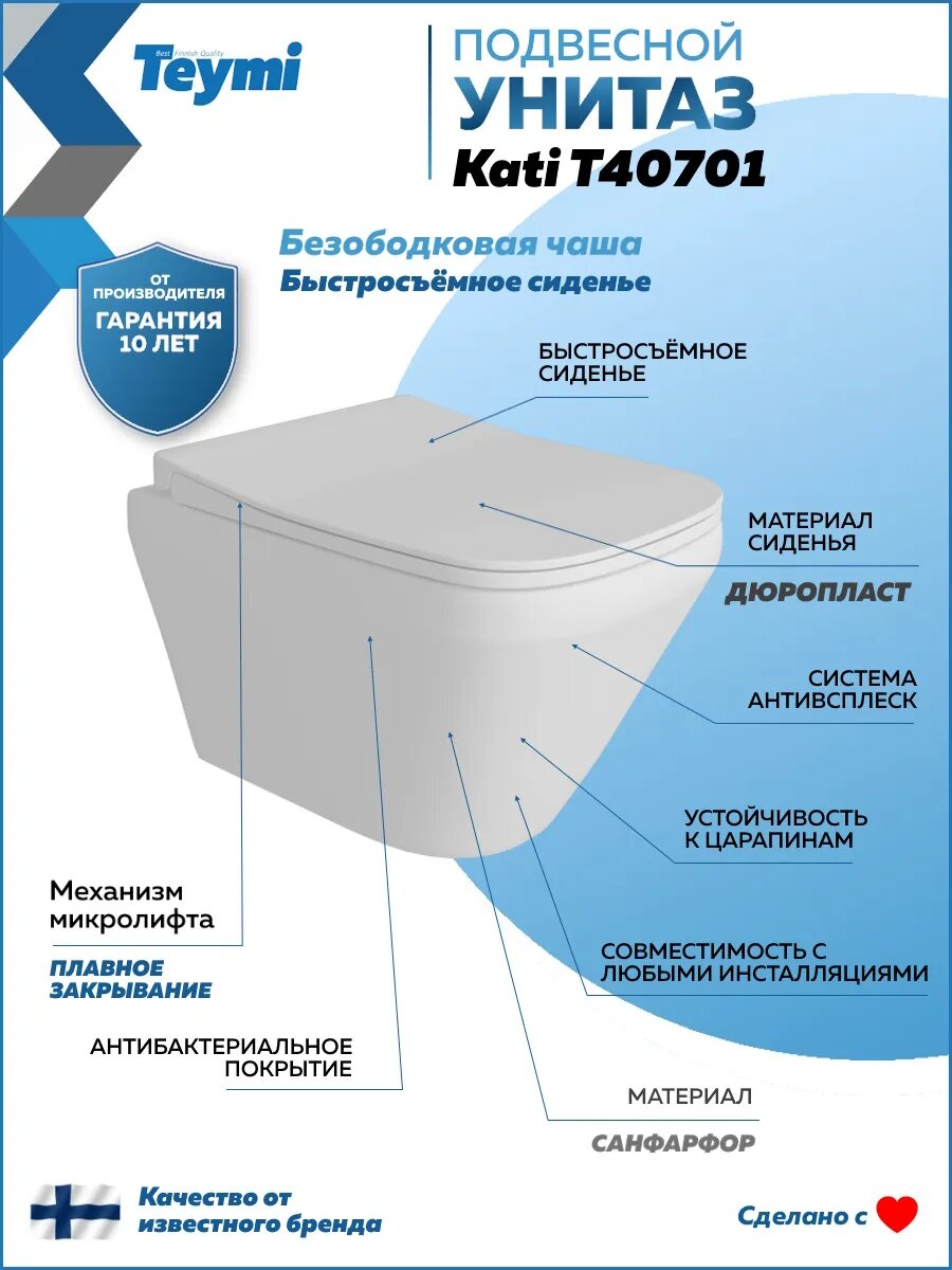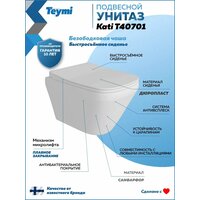 Унитаз подвесной безободковый с быстросъемным сиденьем микролифт Teymi Kati T40701: сравнение цен, характеристики, фото, актуальное наличие и цены.