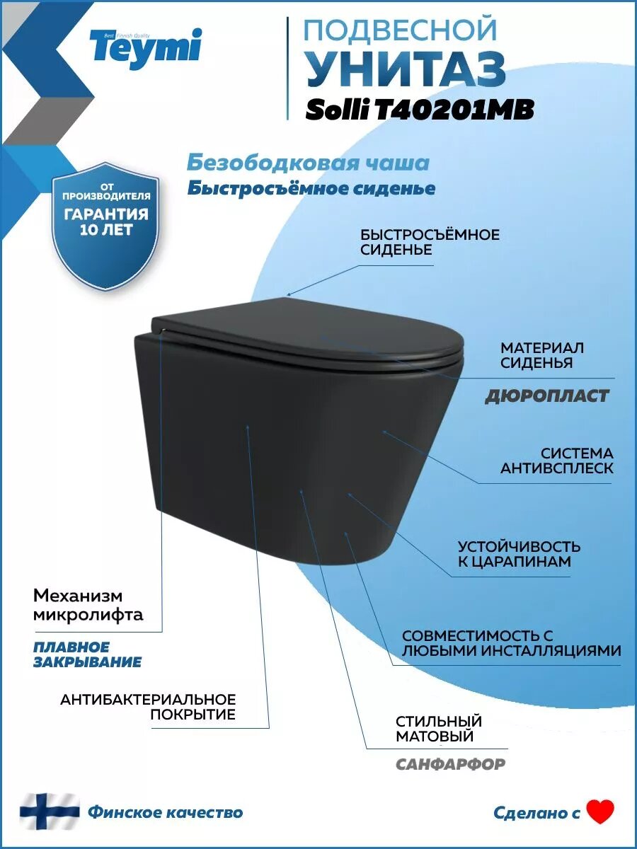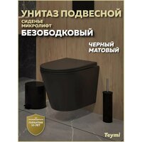 Унитаз подвесной безободковый с быстросъемным сиденьем микролифт Teymi Solli Black черный матовый T40201MB: сравнение цен, характеристики, фото, актуальное наличие и цены.