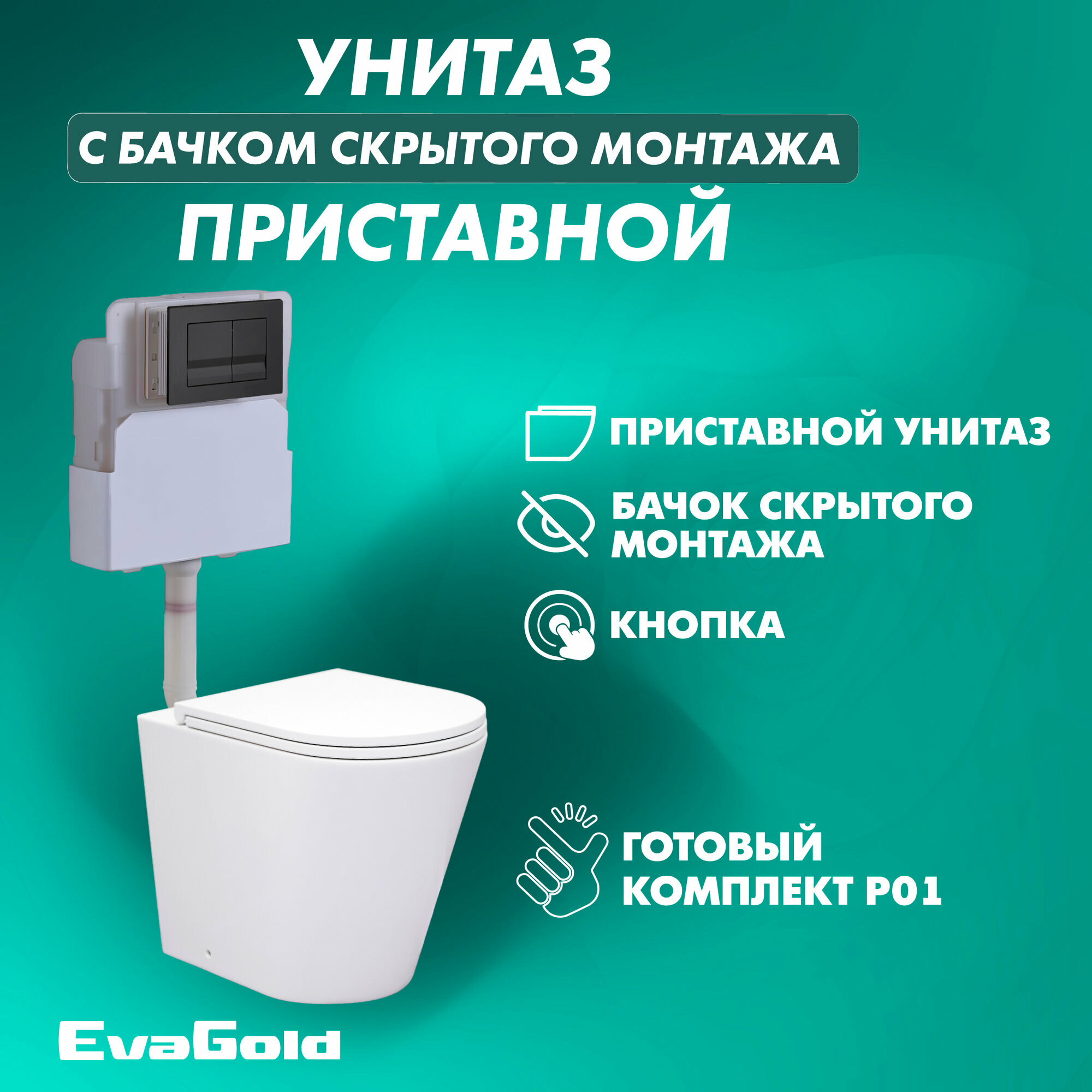 Унитаз приставной с бачком скрытого монтажа EvaGold набор ND801.4 безободковый, с кнопкой смыва квадрат черный матовый: сравнение цен, характеристики, фото, актуальное наличие и цены.