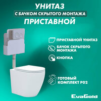 Унитаз приставной с бачком скрытого монтажа EvaGold набор ND802.5 безободковый, с кнопкой смыва круг серый матовый: сравнение цен, характеристики, фото, актуальное наличие и цены.