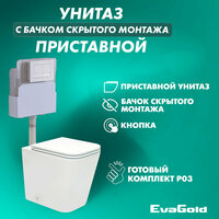 Купить Унитаз приставной с бачком скрытого монтажа EvaGold набор ND803.1 безободковый, с кнопкой смыва квадрат белая с доставкой по всей России.