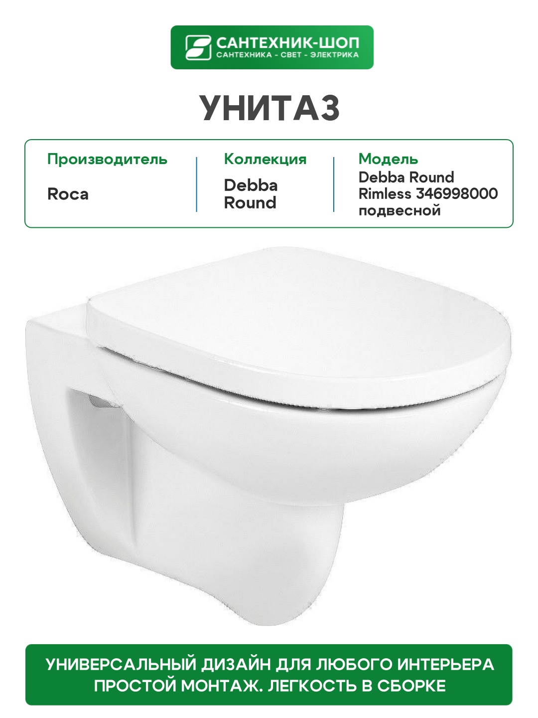 Купить Унитаз Roca Debba Round Rimless 346998000 подвесной без сиденья с доставкой по всей России.