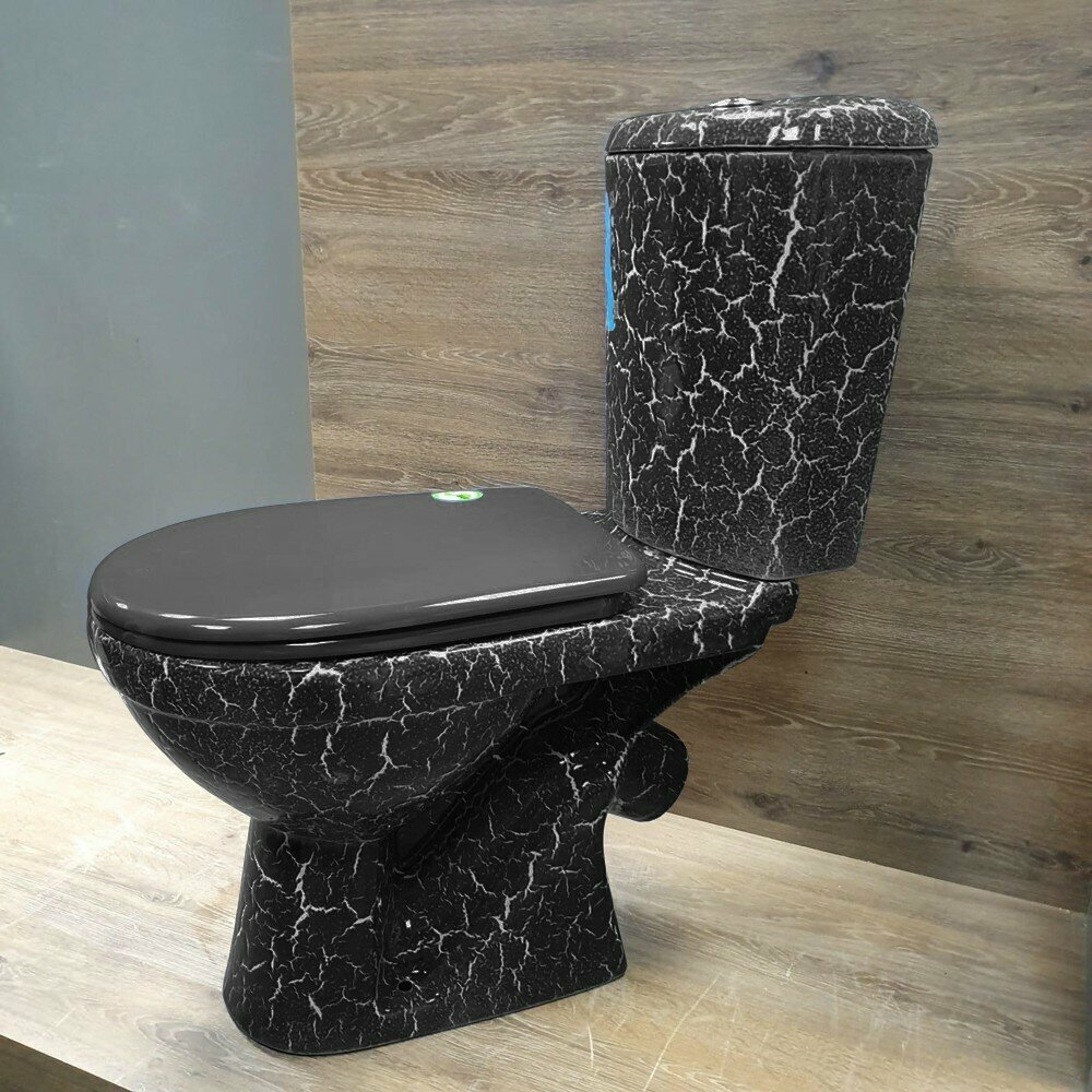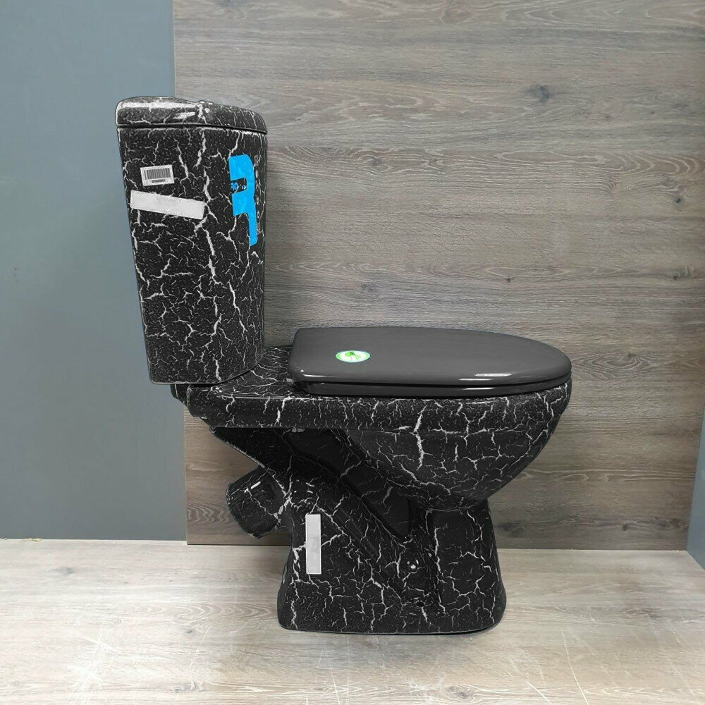 Унитаз-компакт Rosa Комфорт чёрный кракелюр.