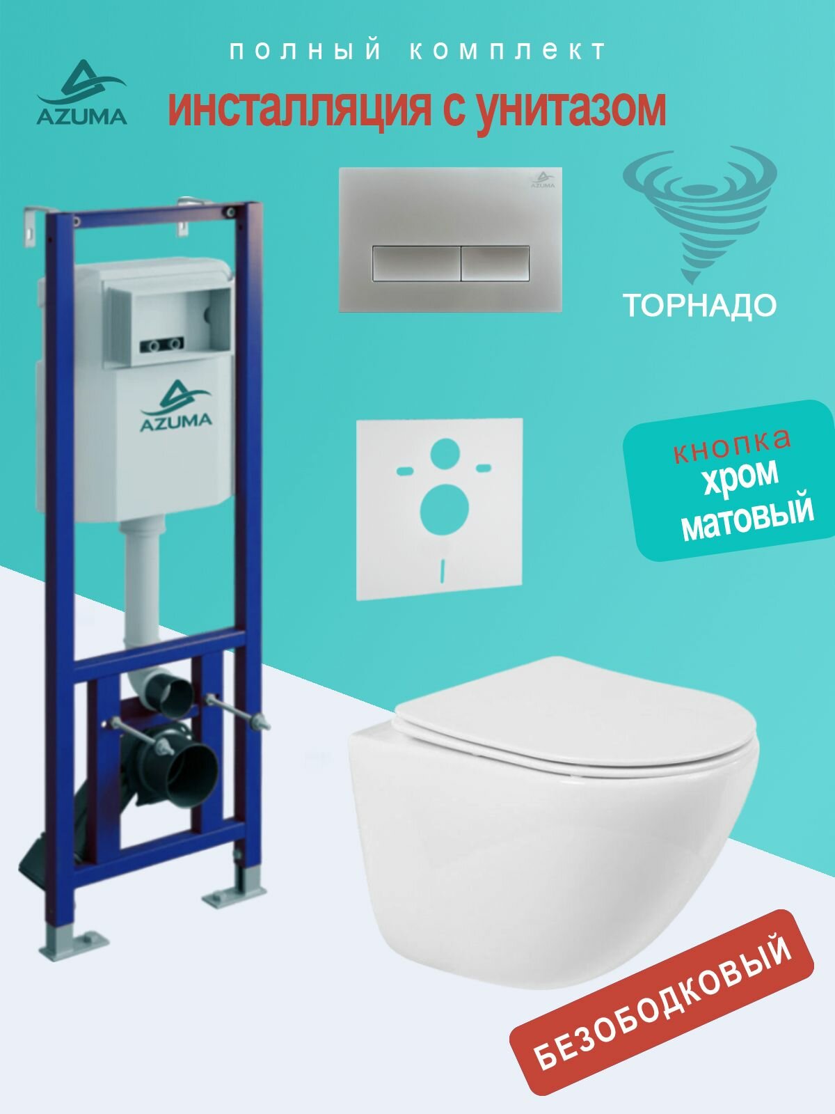 Купить Унитаз AZUMA Primavera Tornado 3.0, подвесной, антигрязевой, с узкой инсталляцией, + клавиша смыва. с доставкой по всей России.