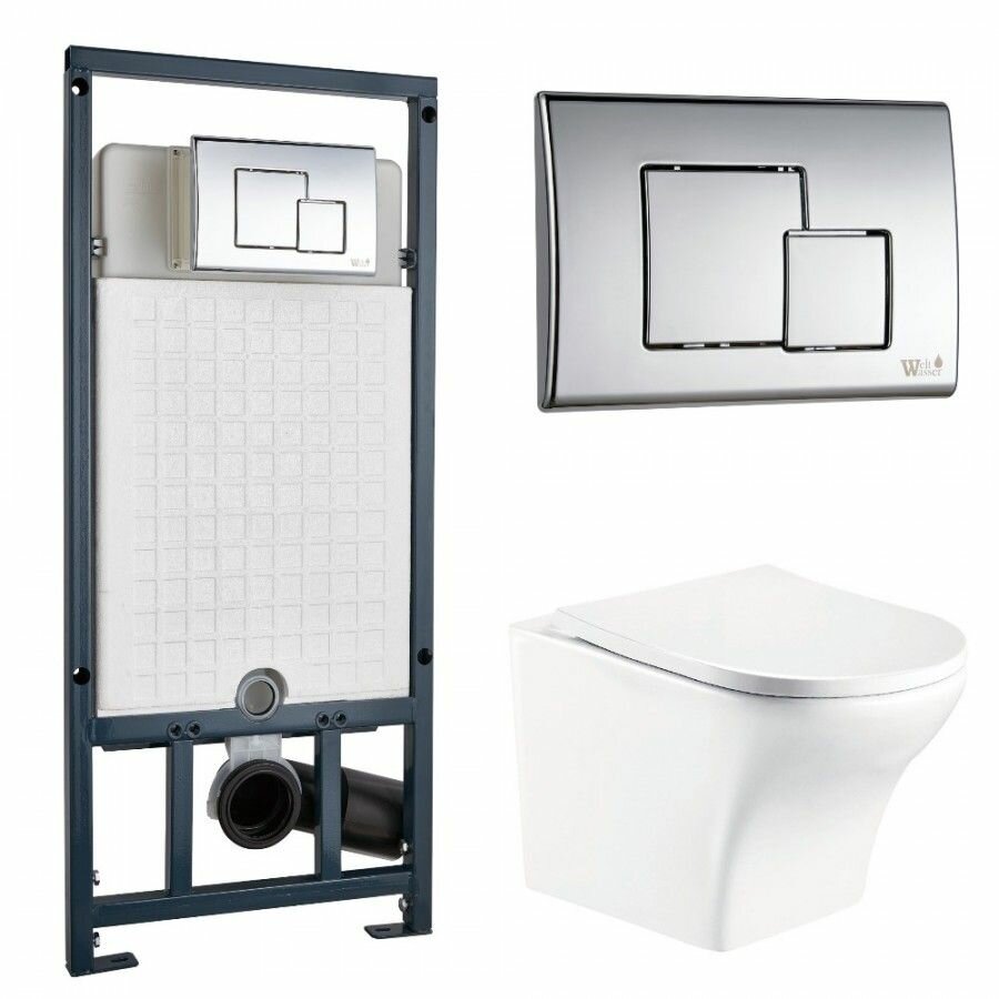 Унитаз с инсталляцией и кнопкой от немецкого производителя WeltWasser.
