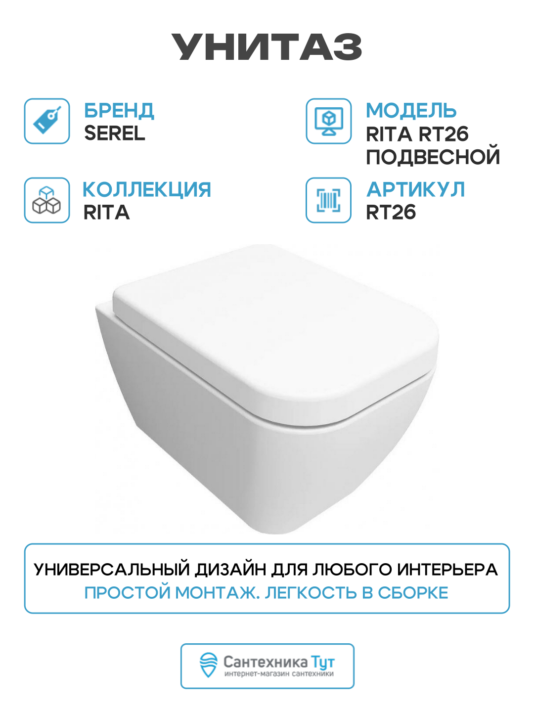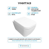 Купить Унитаз Serel Rita RT26 подвесной с сиденьем Микролифт белый фарфор подвесной с доставкой по всей России. Унитаз Serel Rita RT26 подвесной с сиденьем Микролифт белый фарфор подвесной: сравнение цен, характеристики, фото, актуальное наличие и цены.