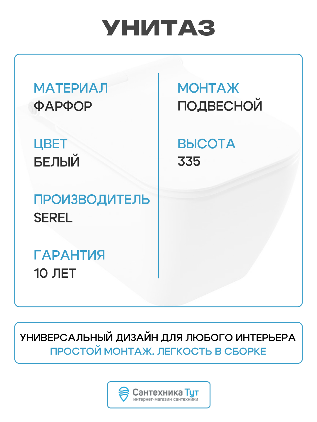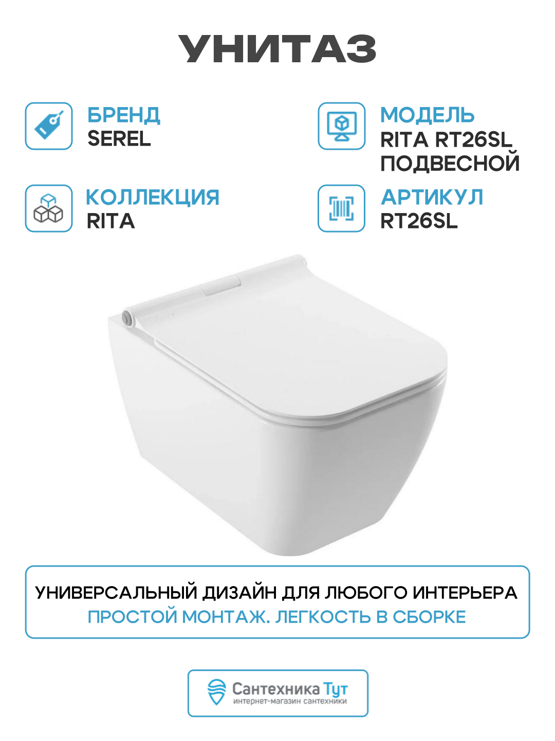 Купить Унитаз Serel Rita RT26SL подвесной с сиденьем Микролифт белый фарфор подвесной с доставкой по всей России. Унитаз Serel Rita RT26SL подвесной с сиденьем Микролифт белый фарфор подвесной: сравнение цен, характеристики, фото, актуальное наличие и цены.