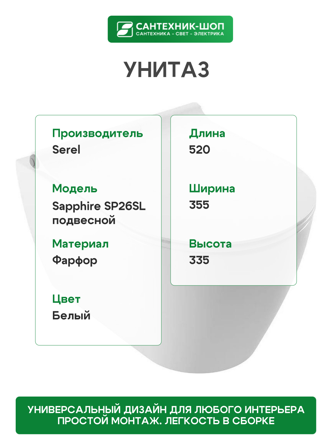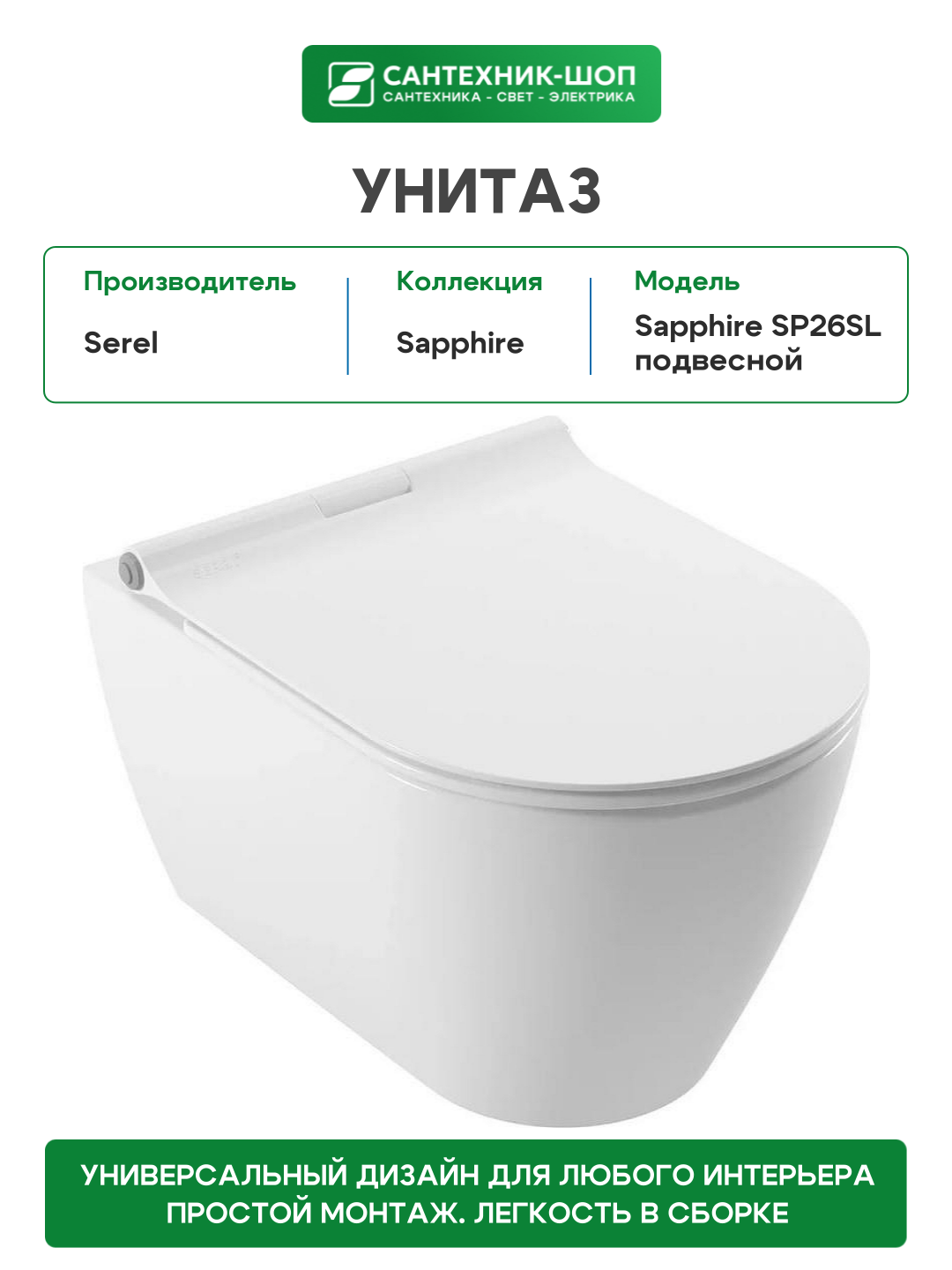 Унитаз Serel Sapphire SP26SL подвесной с сиденьем Микролифт: сравнение цен, характеристики, фото, актуальное наличие и цены.