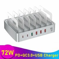 Универсальная 6-портовая подставка для зарядного устройства с несколькими USB PD 72 Вт для IPhone 16 15 14 13 Carregador QC3.0, станция быстрой зарядки для Samsung Xiaomi, EU Plug, 72W Charger Station: сравнение цен, характеристики, фото, актуальное наличие и цены.