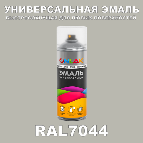 Универсальная быстросохнущая эмаль ONLAK в баллончике, быстросохнущая, глянцевая, для металла, дерева, бетона, кирпича, пластика, стекла, спрей 520 мл, RAL7044: сравнение цен, характеристики, фото, актуальное наличие и цены.