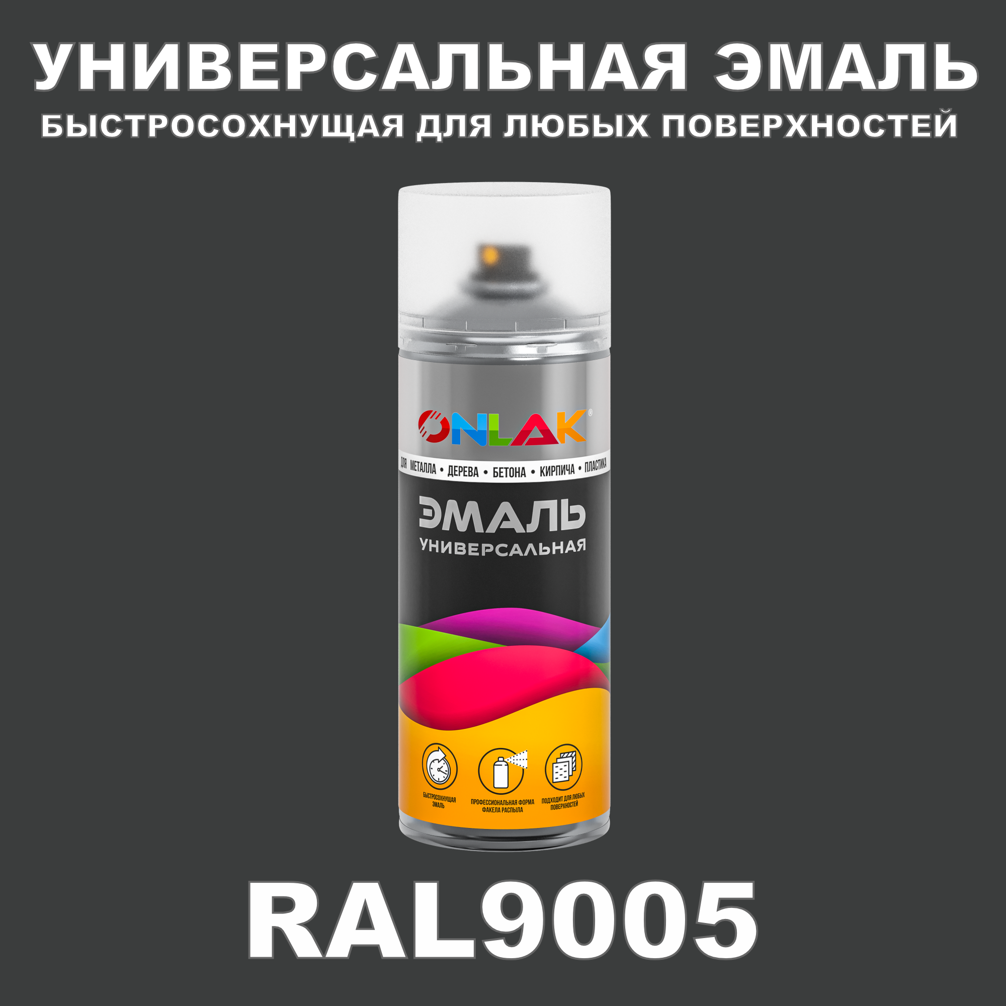 Универсальная быстросохнущая эмаль ONLAK в баллончике, быстросохнущая, матовая, для металла, дерева, бетона, кирпича, пластика, стекла, спрей 520 мл, RAL9005: сравнение цен, характеристики, фото, актуальное наличие и цены.
